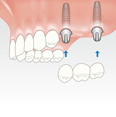 2-4 implants are placed in the lower jaw, 4-6 implants in the upper jaw can support a full denture. This procedure is very economical, greatly improves retention, stability and function. All of these stages can be carried out in the single appointment depending on need and condition of the patient.